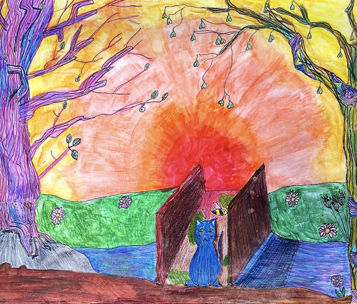 Nach dem Blick in die Oberstufe im Februar wenden wir uns nun der Unterstufe zu. Das „Werk des Monats" März stammt von Hanna Abele aus der Klasse 6a und trägt den Titel Blaue Katze / Katzenwald.