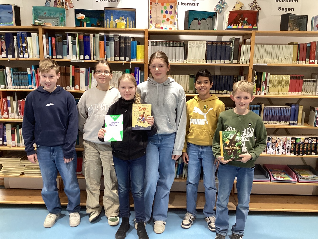 Im Vorfeld wurden je zwei Klassensieger und - siegerinnen in den 6. Klassen ermittelt, sodass sechs Schüler und Schülerinnen das Finale antreten durften. Entsprechend spannend gestaltete sich der Wettbewerb zwischen Jano B., Smilla K., Hannes H., Lily L., Arwin V. Und Malou W.
