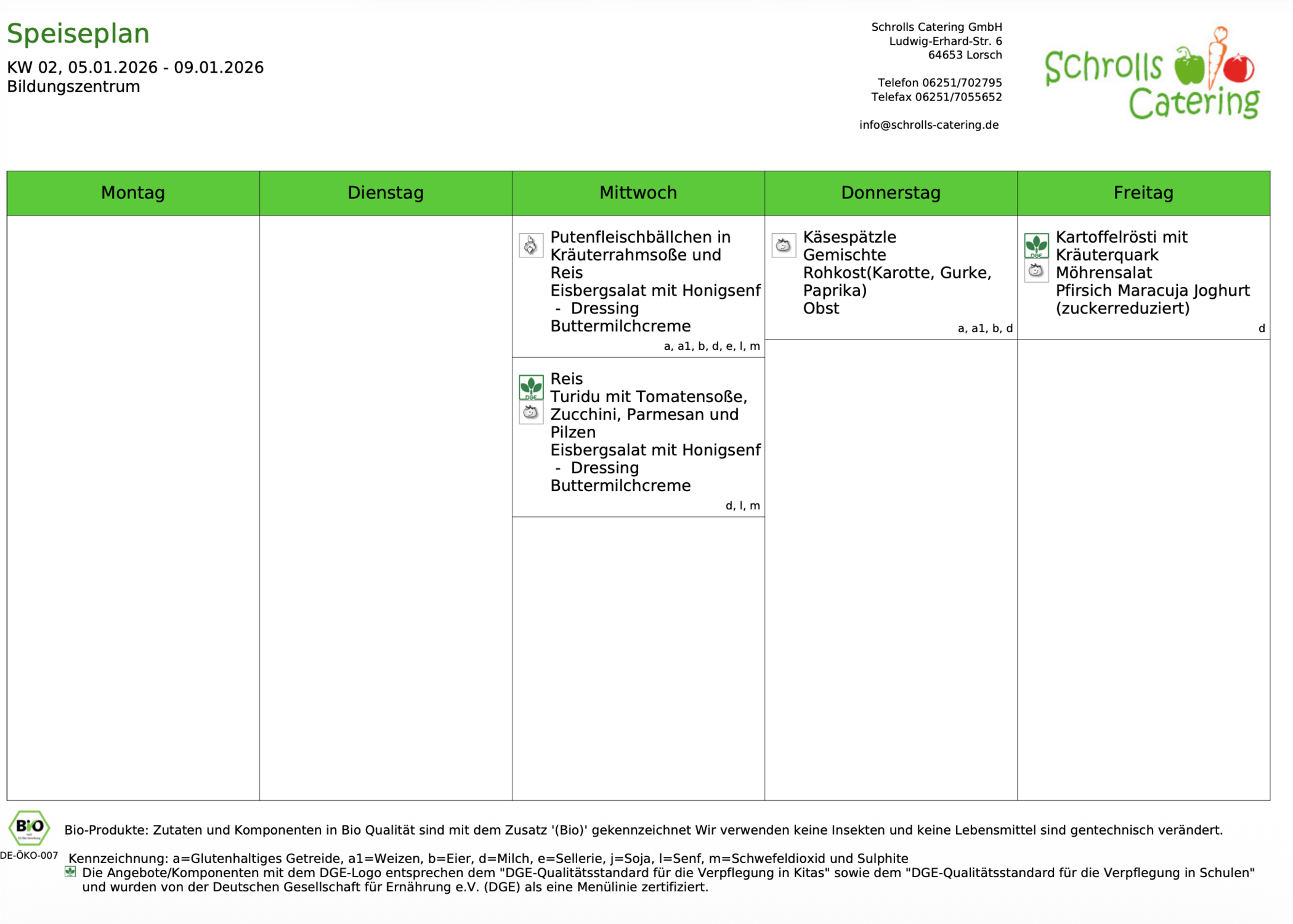Über den Schulträger kann man sich für das warme Mittagessen anmelden. In der großen Pause findet der Bäckerverkauf statt.